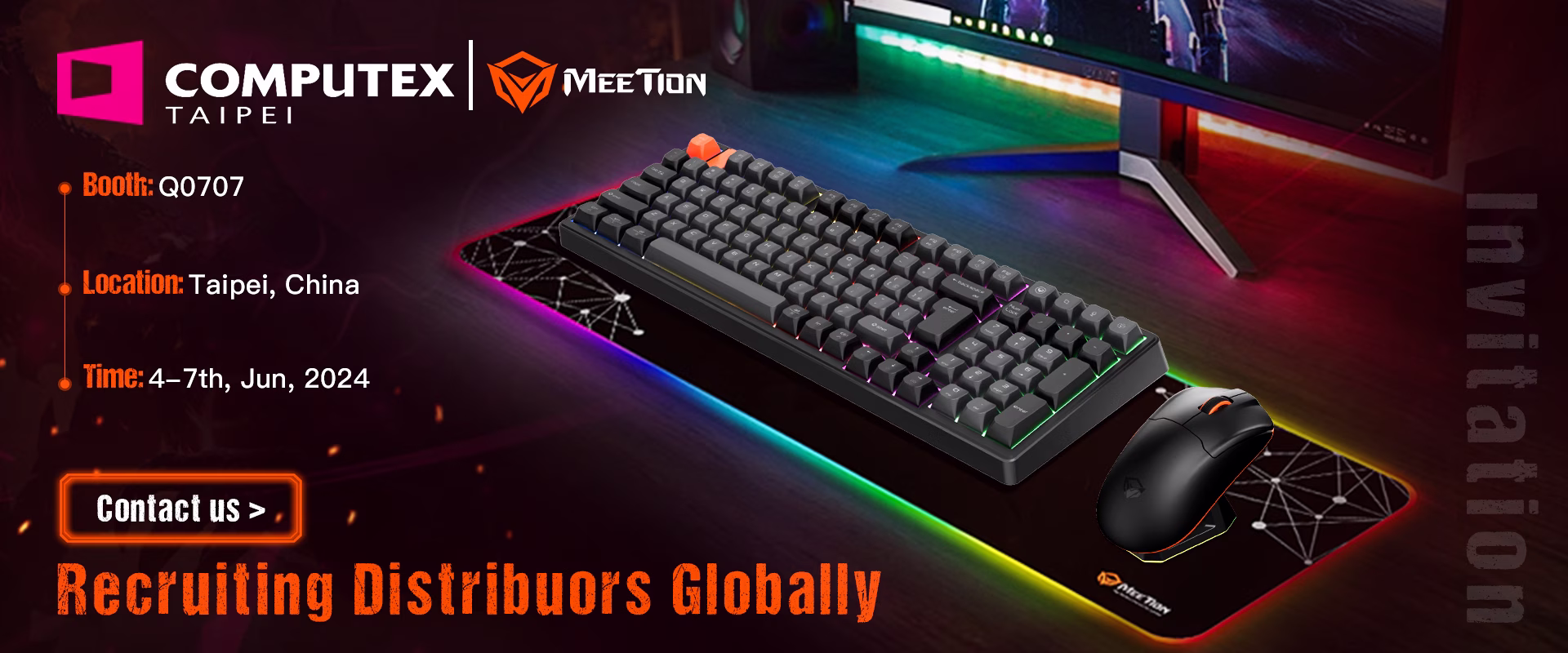 "COMPUTEX is the epicenter of tech innovation and we’re thrilled to showcase our latest at this premier event. Through superior engineering and design, MEETION continues pushing boundaries in gaming peripherals," comments CEO Aaron Lee. "Visitors can experience our commitment to high performance and personalization firsthand in Booth Q0707."