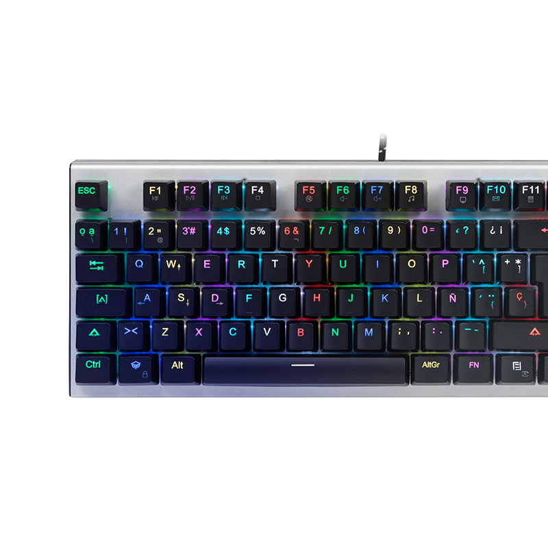 RGB mechanical gaming keyboard, equipped with OUTEMU blue switches, has a crisp sound and gives you good feedback. It adopts an ergonomic design, which can meet gamers' pursuit of hand feel and performance, greatly improve operation efficiency, and ensure longer service life. Customizable macro recording function, whether you are a gamer or an office business person, this keyboard can well meet your daily needs, RGB background lighting can be switched at will, and has user-friendly functions, such as automatic Define RGB backlight, full key anti-ghosting, 12 multimedia keys, etc. Standard USB braided cable 1.8 meters.